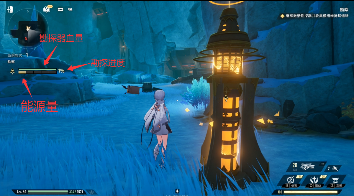 )为勘探器充能。