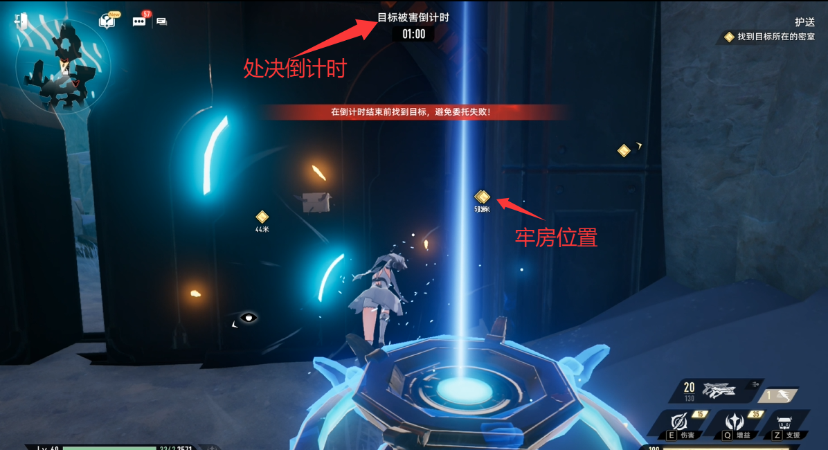 3.跟随指引到达目标位置,一共会出现4个解密装置,对应4个牢房。人质会随机出现在其中一个牢房之中。